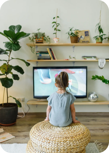 孩子在电视上看分享的影片