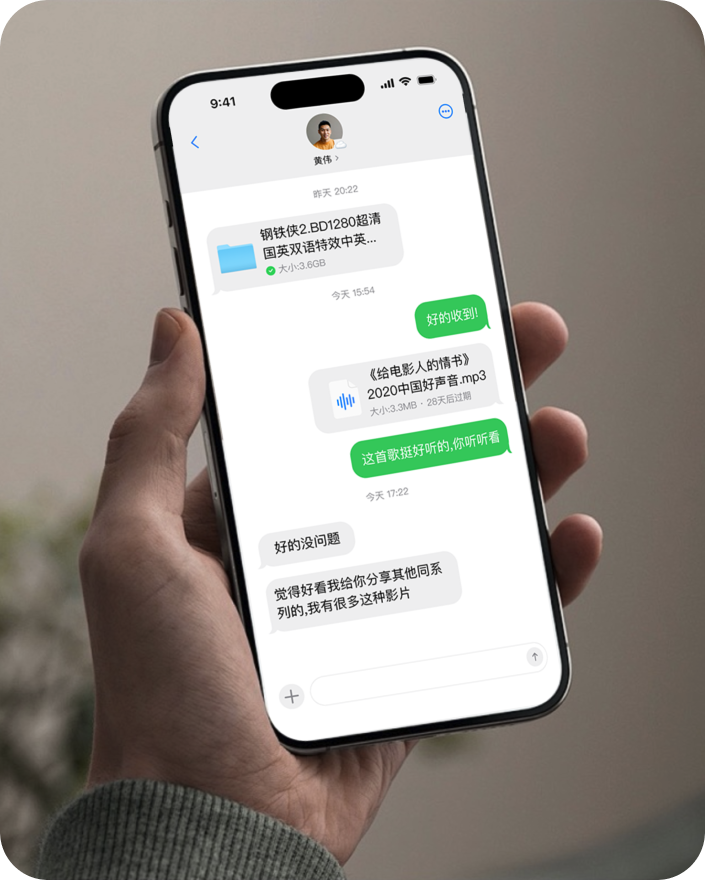 无论文件的大小如何,您都可以轻松快捷地将它们分享给远在千里之外的朋友,让距离不再是障碍,随时随地保持紧密联系和无缝沟通。